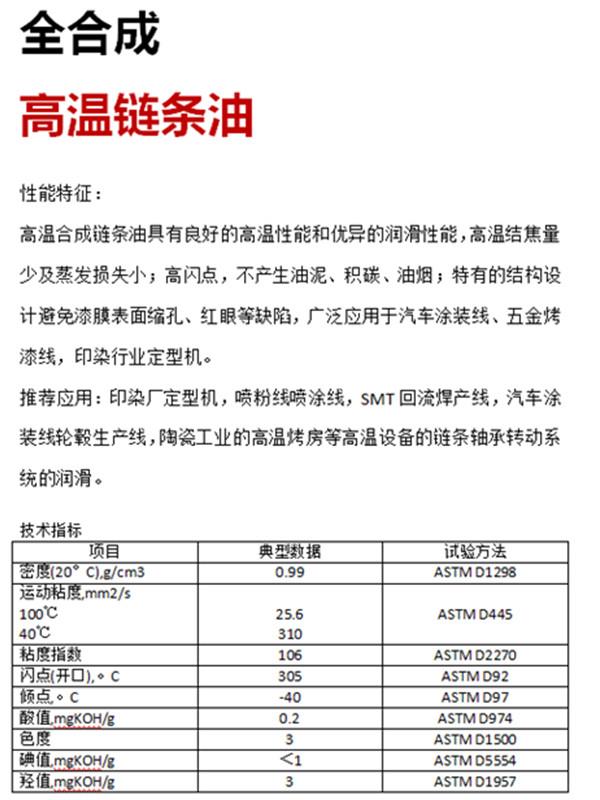 廈門威馬工貿有限公司位于美麗的花園城市-廈門市同安區(qū),公司專營合成高溫油脂系列產品。產品分為:高溫鏈條油、高溫潤滑脂、高低溫潤滑脂等系列油品。廣泛應用于:定型機、噴涂/噴粉、巖棉等高溫潤滑設備,本品無煙,無殘渣,屬于全合成高溫油系列,可寄樣試用,長期服務全國客戶。